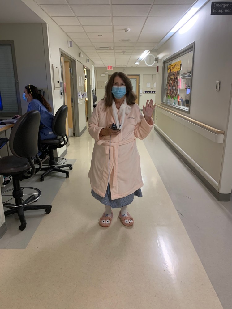 All of this side tripping laid waste to my hopes of getting out Sunday (today), then Monday, now it’s Tuesday. Nevertheless, today was a super great day, as I stayed out of A-fib, walked the halls five times, and visited with our daughter Katie who endured two COVID tests and two weeks of isolation just to be here wit her dad and me. Our son Alex was sad not to be here, but he has a young family and it just wasn’t feasible. He has been FaceTiming instead.